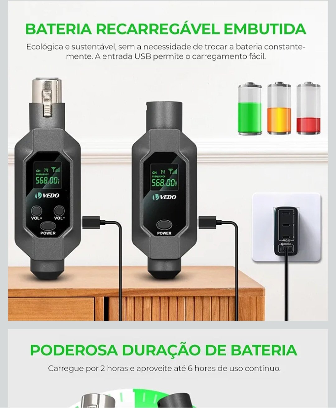 ✔ Longo alcance de transmissão (ideal para palco e eventos)