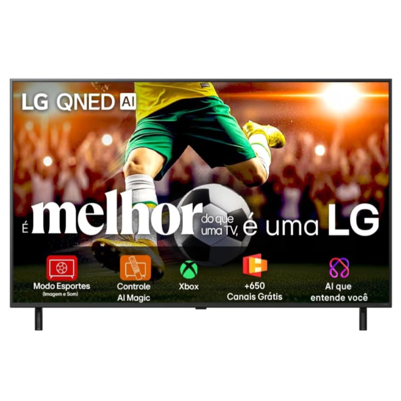 O sistema de áudio de 20W com AI Acoustic Tuning ajusta automaticamente o som ao ambiente, proporcionando diálogos mais claros e maior imersão em filmes e séries.